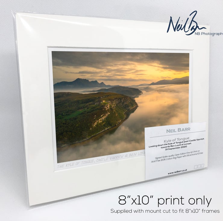 Supplied already mounted, wrapped & with signed labels & certificate, the image is printed on A5 size fine art paper (148x210mm). The actual image size is smaller (see listing images for sizes - image approx. 185x123mm) to allow for the signature & inscription. The 100% acid-free mount is cut to fit standard ready-made frames from high street stores. EXTERNAL mount size is 10"x8". This is the OUTSIDE size of the mount (and thus the size your frame should be).