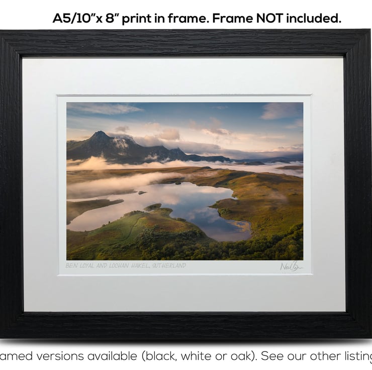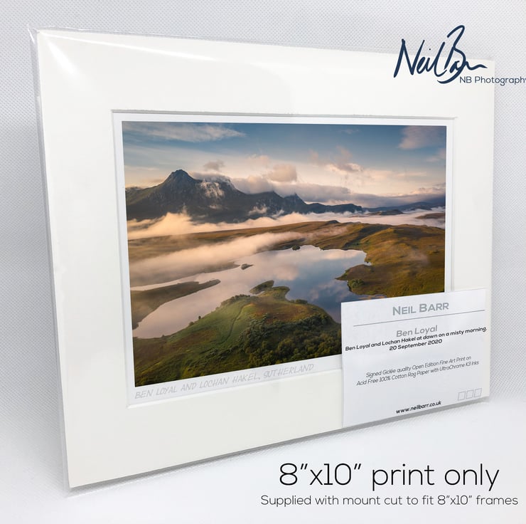 Supplied already mounted, wrapped & with signed labels & certificate, the image is printed on A5 size fine art paper (148x210mm). The actual image size is smaller (see listing images for sizes - image approx. 185x123mm) to allow for the signature & inscription. The 100% acid-free mount is cut to fit standard ready-made frames from high street stores. EXTERNAL mount size is 10"x8". This is the OUTSIDE size of the mount (and thus the size your frame should be).