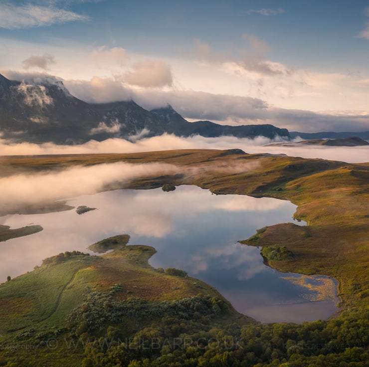 Image: "Ben Loyal" - Ben Loyal and Lochan Hakel at dawn on a misty morning, 20 September 2020 - by Scotland photographer Neil Barr