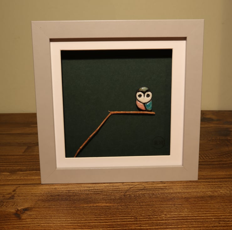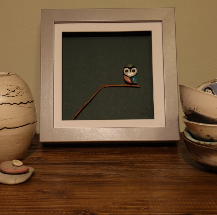 Handmade ceramic owl picture, made in Stirling.