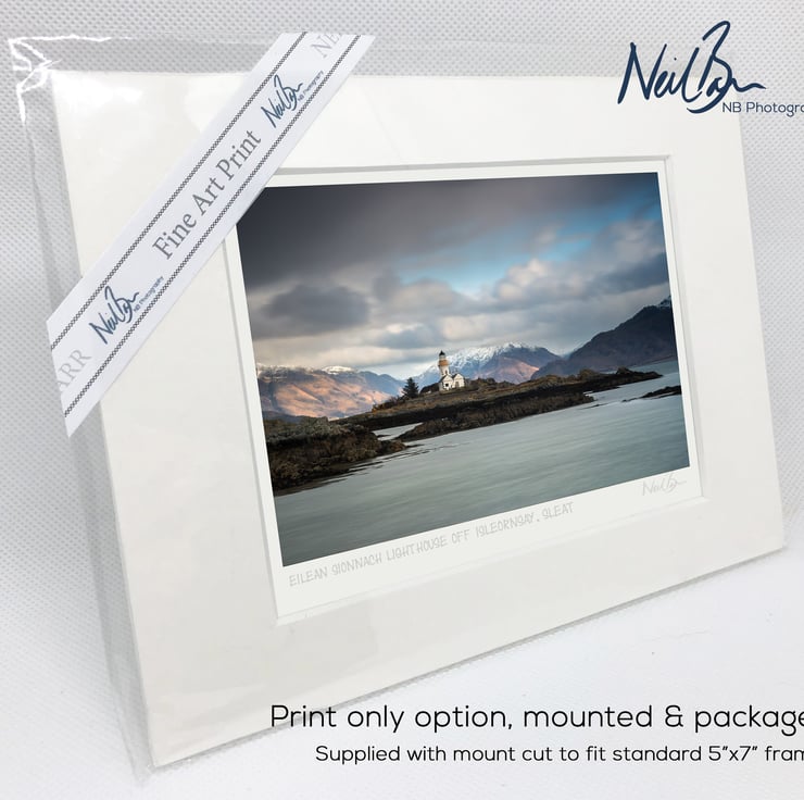 Supplied already mounted, wrapped & with signed labels & certificate, the image is printed on A6 size fine art paper (148x105mm). The actual image size is smaller (see listing images for sizes - image approx. 115x77mm) to allow for the signature & inscription. The 100% acid-free mount is cut to fit standard ready-made frames from high street stores. EXTERNAL mount size is 7"x5". This is the OUTSIDE size of the mount (and thus the size your frame should be).