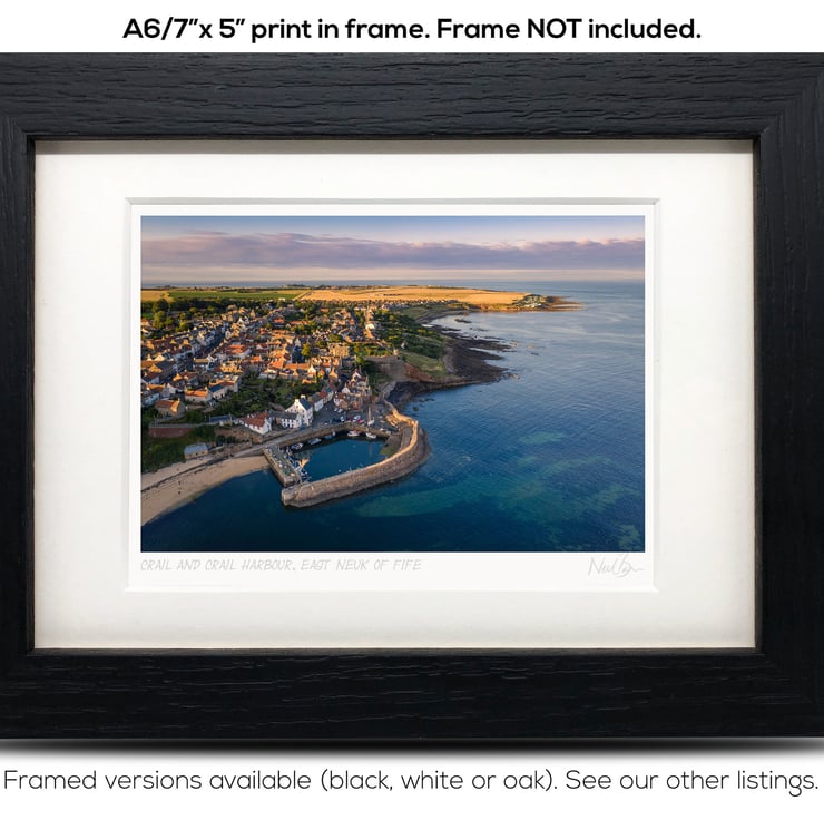 Supplied already mounted, wrapped & with signed labels & certificate, the image is printed on A6 size fine art paper (148x105mm). The actual image size is smaller (see listing images for sizes - image approx. 115x77mm) to allow for the signature & inscription. The 100% acid-free mount is cut to fit standard ready-made frames from high street stores. EXTERNAL mount size is 7"x5". This is the OUTSIDE size of the mount (and thus the size your frame should be).