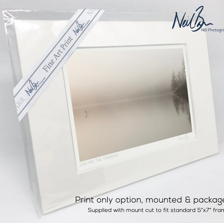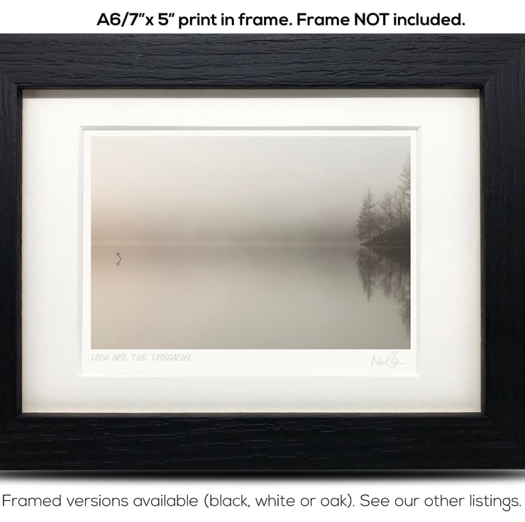 Supplied already mounted, wrapped & with signed labels & certificate, the image is printed on A6 size fine art paper (148x105mm). The actual image size is smaller (see listing images for sizes - image approx. 115x77mm) to allow for the signature & inscription. The 100% acid-free mount is cut to fit standard ready-made frames from high street stores. EXTERNAL mount size is 7"x5". This is the OUTSIDE size of the mount (and thus the size your frame should be).