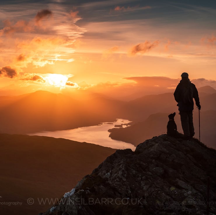 Image: "Best Friends" - Loch Katrine from Ben Venue at sunset, 6 August 2015 - by Scotland photographer Neil Barr