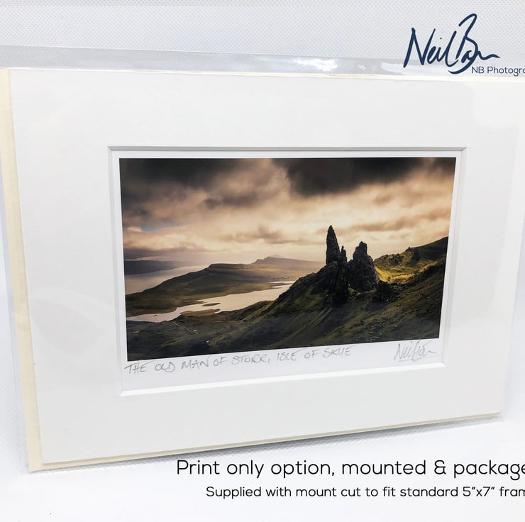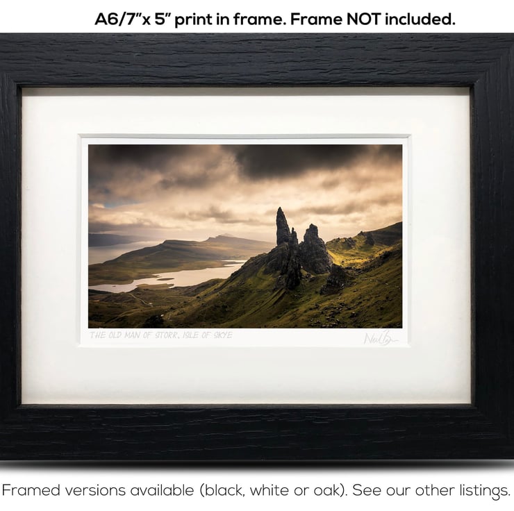 Supplied already mounted, wrapped & with signed labels & certificate, the image is printed on A6 size fine art paper (148x105mm). The actual image size is smaller (see listing images for sizes - image approx. 115x65mm) to allow for the signature & inscription. The 100% acid-free mount is cut to fit standard ready-made frames from high street stores. EXTERNAL mount size is 7"x5". This is the OUTSIDE size of the mount (and thus the size your frame should be).
