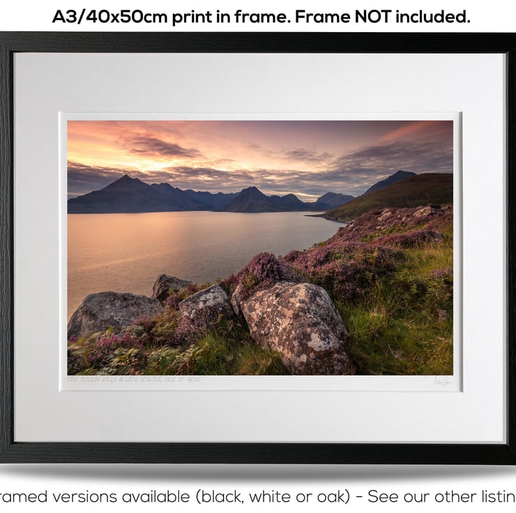 Supplied already mounted, wrapped & with signed labels & certificate, the image is printed on A3 size fine art paper (297x420mm). The actual image size is smaller (see listing images for sizes) to allow for the signature & inscription. The 100% acid-free mount is cut to fit standard ready-made frames from high street stores. EXTERNAL mount size is 50cm x 40cm. This is the OUTSIDE size of the mount (and thus the size your frame needs to be).