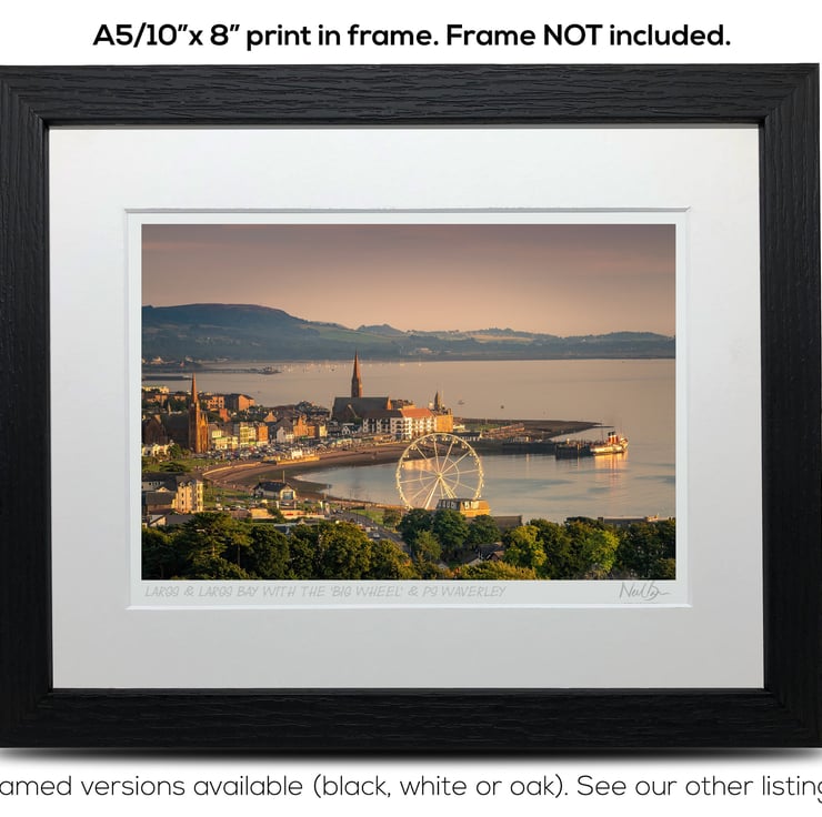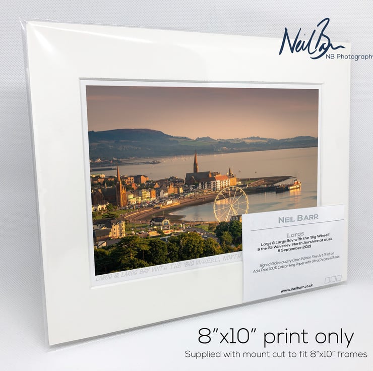 Supplied already mounted, wrapped & with signed labels & certificate, the image is printed on A5 size fine art paper (148x210mm). The actual image size is smaller (see listing images for sizes - image approx. 185x123mm) to allow for the signature & inscription. The 100% acid-free mount is cut to fit standard ready-made frames from high street stores. EXTERNAL mount size is 10"x8". This is the OUTSIDE size of the mount (and thus the size your frame should be).