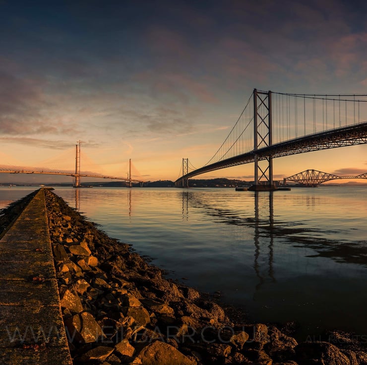Image: "The Three Bridges at Dawn" - The Queensferry Crossing, The Forth Road Bridge and the Forth Bridge across the River Forth, from Port Edgar, 7 March 2017 - by Scotland photographer Neil Barr