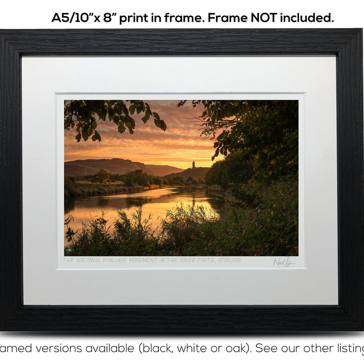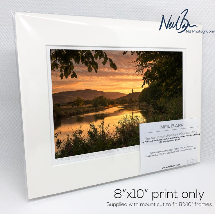 Supplied already mounted, wrapped & with signed labels & certificate, the image is printed on A5 size fine art paper (148x210mm). The actual image size is smaller (see listing images for sizes - image approx. 185x123mm) to allow for the signature & inscription. The 100% acid-free mount is cut to fit standard ready-made frames from high street stores. EXTERNAL mount size is 10"x8". This is the OUTSIDE size of the mount (and thus the size your frame should be).