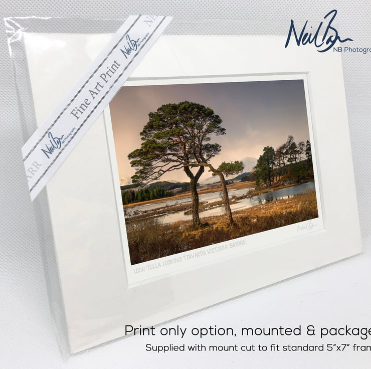 Supplied already mounted, wrapped & with signed labels & certificate, the image is printed on A6 size fine art paper (148x105mm). The actual image size is smaller (see listing images for sizes - image approx. 115x77mm) to allow for the signature & inscription. The 100% acid-free mount is cut to fit standard ready-made frames from high street stores. EXTERNAL mount size is 7"x5". This is the OUTSIDE size of the mount (and thus the size your frame should be).
