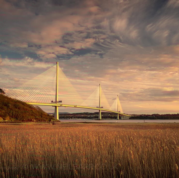 Image: "The Queensferry Crossing" - The Queensferry Crossing at sunset from North Queensferry, 30 March 2019 - by Scotland photographer Neil Barr