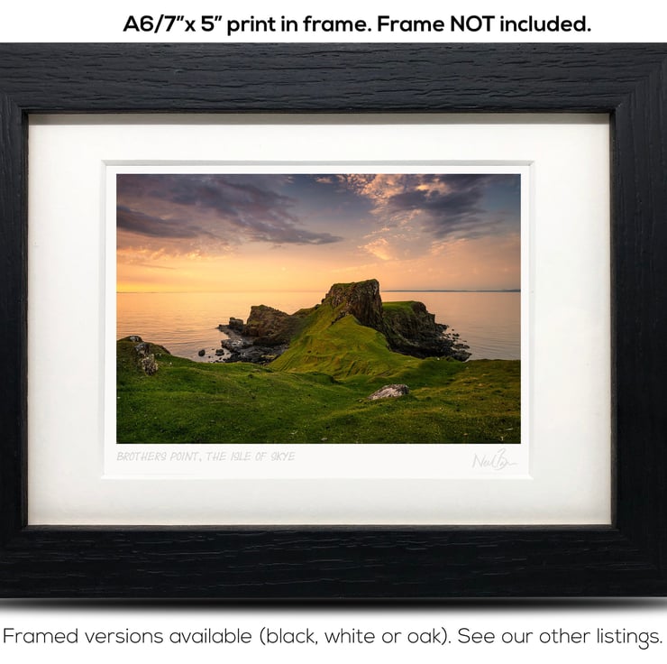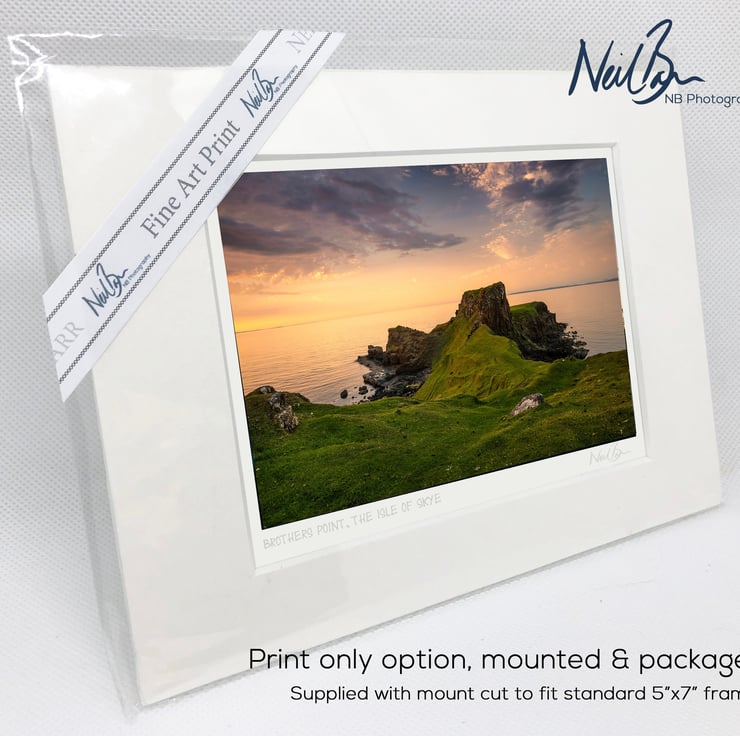 Supplied already mounted, wrapped & with signed labels & certificate, the image is printed on A6 size fine art paper (148x105mm). The actual image size is smaller (see listing images for sizes - image approx. 115x77mm) to allow for the signature & inscription. The 100% acid-free mount is cut to fit standard ready-made frames from high street stores. EXTERNAL mount size is 7"x5". This is the OUTSIDE size of the mount (and thus the size your frame should be).