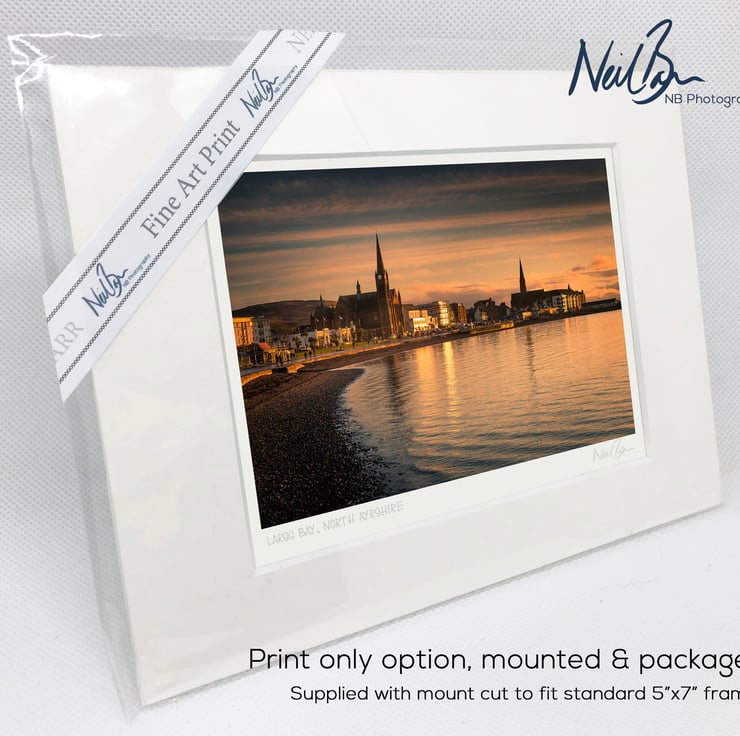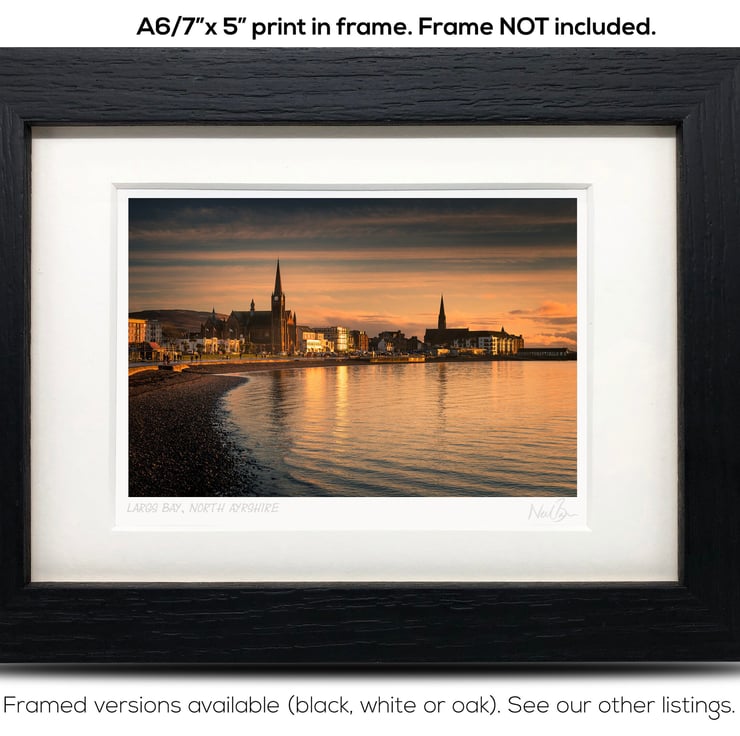 Supplied already mounted, wrapped & with signed labels & certificate, the image is printed on A6 size fine art paper (148x105mm). The actual image size is smaller (see listing images for sizes - image approx. 115x77mm) to allow for the signature & inscription. The 100% acid-free mount is cut to fit standard ready-made frames from high street stores. EXTERNAL mount size is 7"x5". This is the OUTSIDE size of the mount (and thus the size your frame should be).