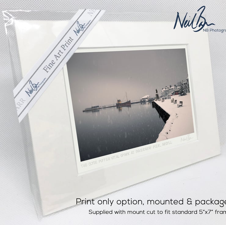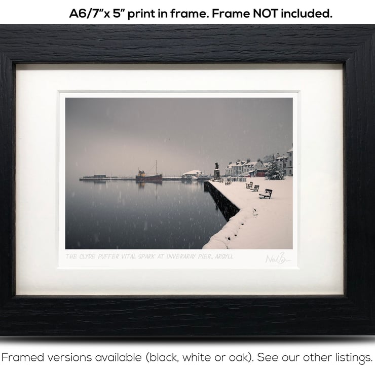 Image: "Inveraray" - The Clyde puffer Vital Spark at Inveraray pier on a snowy day, 23 January 2019 - by Scotland photographer Neil Barr