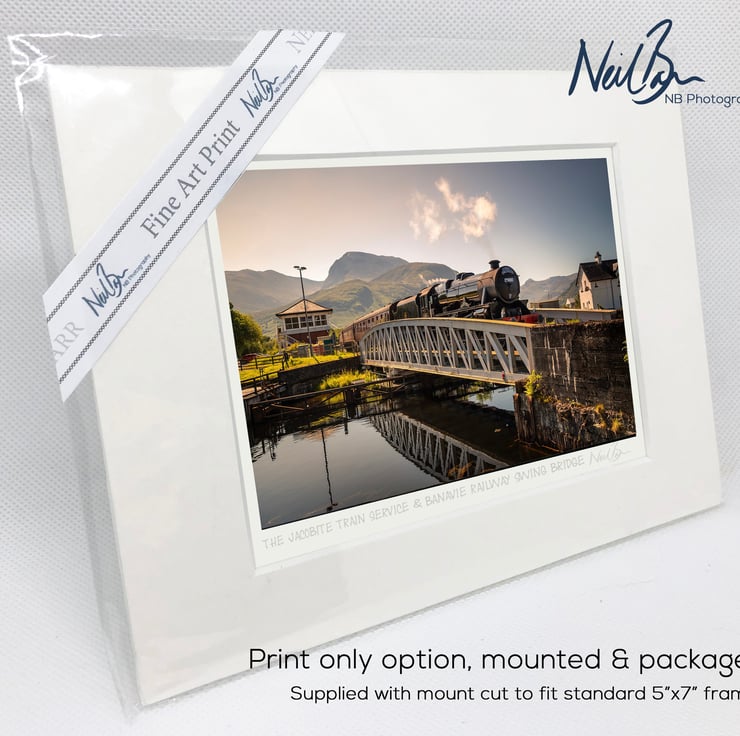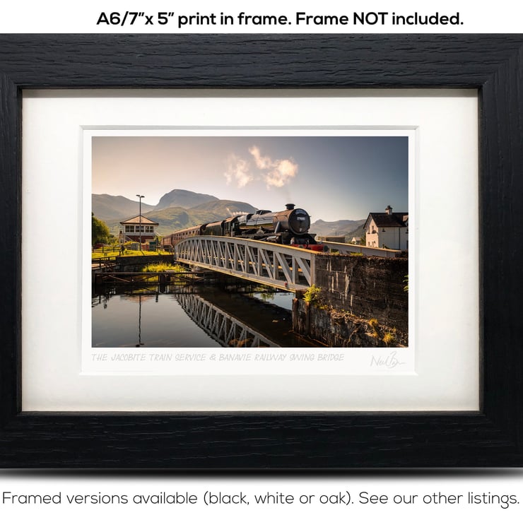 Supplied already mounted, wrapped & with signed labels & certificate, the image is printed on A6 size fine art paper (148x105mm). The actual image size is smaller (see listing images for sizes - image approx. 115x77mm) to allow for the signature & inscription. The 100% acid-free mount is cut to fit standard ready-made frames from high street stores. EXTERNAL mount size is 7"x5". This is the OUTSIDE size of the mount (and thus the size your frame should be).