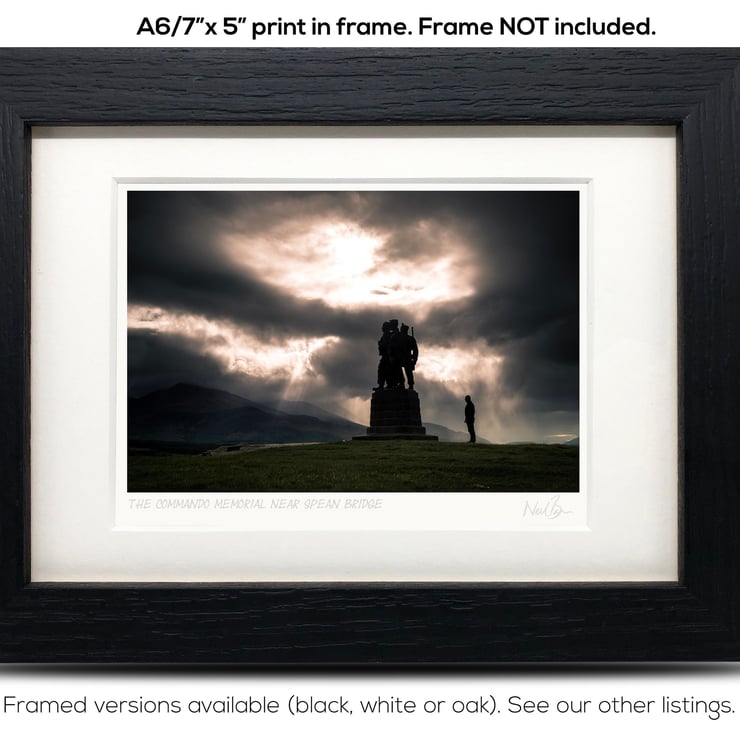 Supplied already mounted, wrapped & with signed labels & certificate, the image is printed on A6 size fine art paper (148x105mm). The actual image size is smaller (see listing images for sizes - image approx. 115x77mm) to allow for the signature & inscription. The 100% acid-free mount is cut to fit standard ready-made frames from high street stores. EXTERNAL mount size is 7"x5". This is the OUTSIDE size of the mount (and thus the size your frame should be).