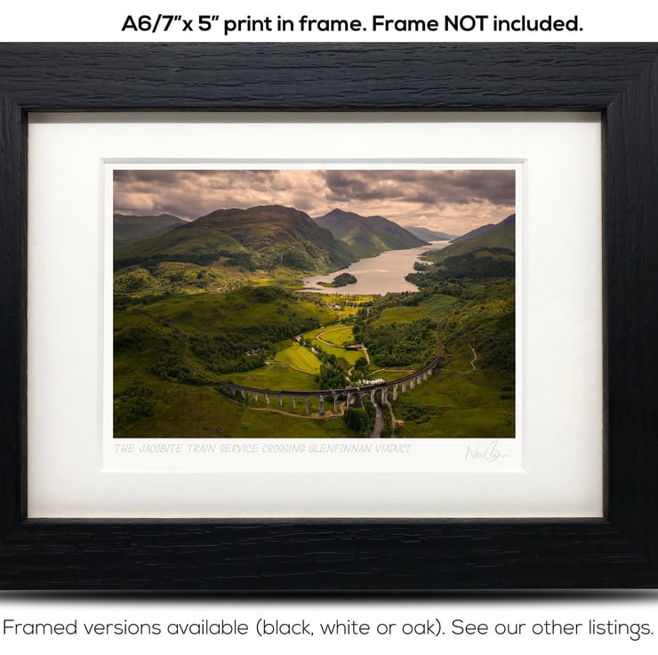 Supplied already mounted, wrapped & with signed labels & certificate, the image is printed on A6 size fine art paper (148x105mm). The actual image size is smaller (see listing images for sizes - image approx. 115x77mm) to allow for the signature & inscription. The 100% acid-free mount is cut to fit standard ready-made frames from high street stores. EXTERNAL mount size is 7"x5". This is the OUTSIDE size of the mount (and thus the size your frame should be).