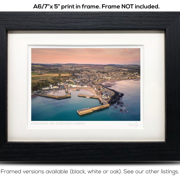 Supplied already mounted, wrapped & with signed labels & certificate, the image is printed on A6 size fine art paper (148x105mm). The actual image size is smaller (see listing images for sizes - image approx. 115x77mm) to allow for the signature & inscription. The 100% acid-free mount is cut to fit standard ready-made frames from high street stores. EXTERNAL mount size is 7"x5". This is the OUTSIDE size of the mount (and thus the size your frame should be).