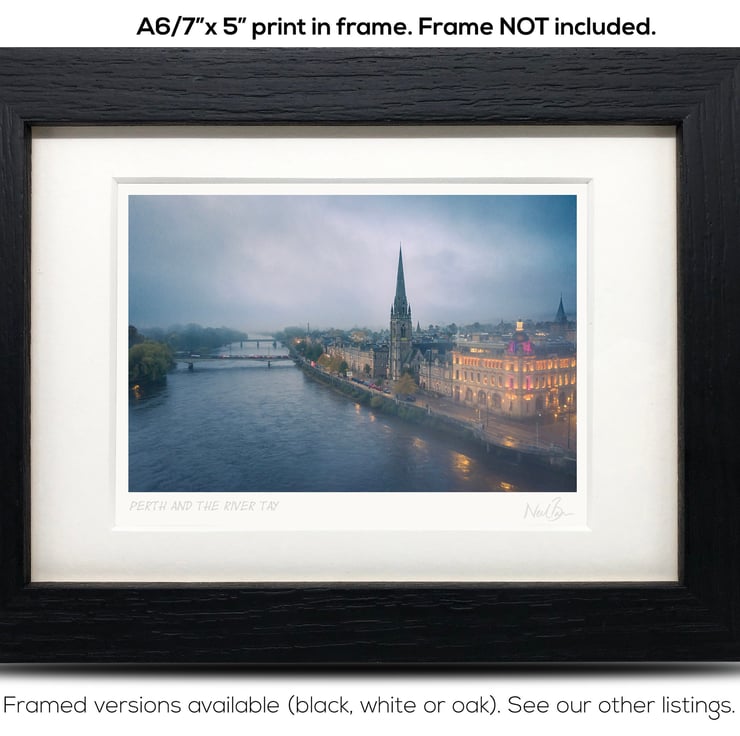 Supplied already mounted, wrapped & with signed labels & certificate, the image is printed on A6 size fine art paper (148x105mm). The actual image size is smaller (see listing images for sizes - image approx. 115x77mm) to allow for the signature & inscription. The 100% acid-free mount is cut to fit standard ready-made frames from high street stores. EXTERNAL mount size is 7"x5". This is the OUTSIDE size of the mount (and thus the size your frame should be).