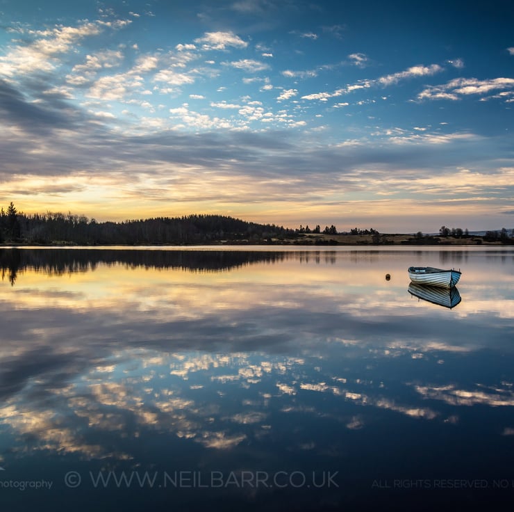 Image: "Loch Rusky" - Fishing boat on Loch Rusky nr Callander, 27 March 2015 - by Scotland photographer Neil Barr