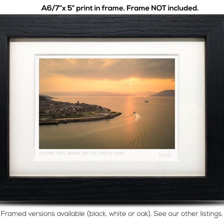Supplied already mounted, wrapped & with signed labels & certificate, the image is printed on A6 size fine art paper (148x105mm). The actual image size is smaller (see listing images for sizes - image approx. 115x77mm) to allow for the signature & inscription. The 100% acid-free mount is cut to fit standard ready-made frames from high street stores. EXTERNAL mount size is 7"x5". This is the OUTSIDE size of the mount (and thus the size your frame should be).