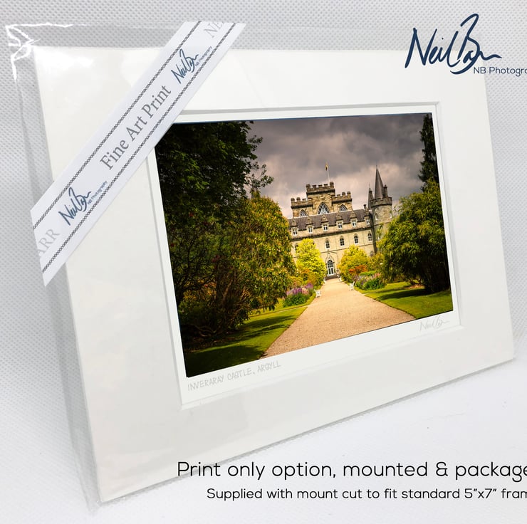 Supplied already mounted, wrapped & with signed labels & certificate, the image is printed on A6 size fine art paper (148x105mm). The actual image size is smaller (see listing images for sizes - image approx. 115x77mm) to allow for the signature & inscription. The 100% acid-free mount is cut to fit standard ready-made frames from high street stores. EXTERNAL mount size is 7"x5". This is the OUTSIDE size of the mount (and thus the size your frame should be).