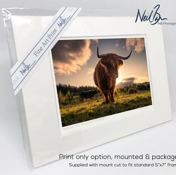 Supplied already mounted, wrapped & with signed labels & certificate, the image is printed on A6 size fine art paper (148x105mm). The actual image size is smaller (see listing images for sizes - image approx. 115x77mm) to allow for the signature & inscription. The 100% acid-free mount is cut to fit standard ready-made frames from high street stores. EXTERNAL mount size is 7"x5". This is the OUTSIDE size of the mount (and thus the size your frame should be).