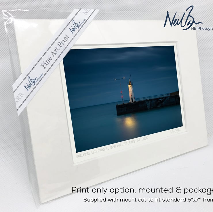 Supplied already mounted, wrapped & with signed labels & certificate, the image is printed on A6 size fine art paper (148x105mm). The actual image size is smaller (see listing images for sizes - image approx. 115x77mm) to allow for the signature & inscription. The 100% acid-free mount is cut to fit standard ready-made frames from high street stores. EXTERNAL mount size is 7"x5". This is the OUTSIDE size of the mount (and thus the size your frame should be).