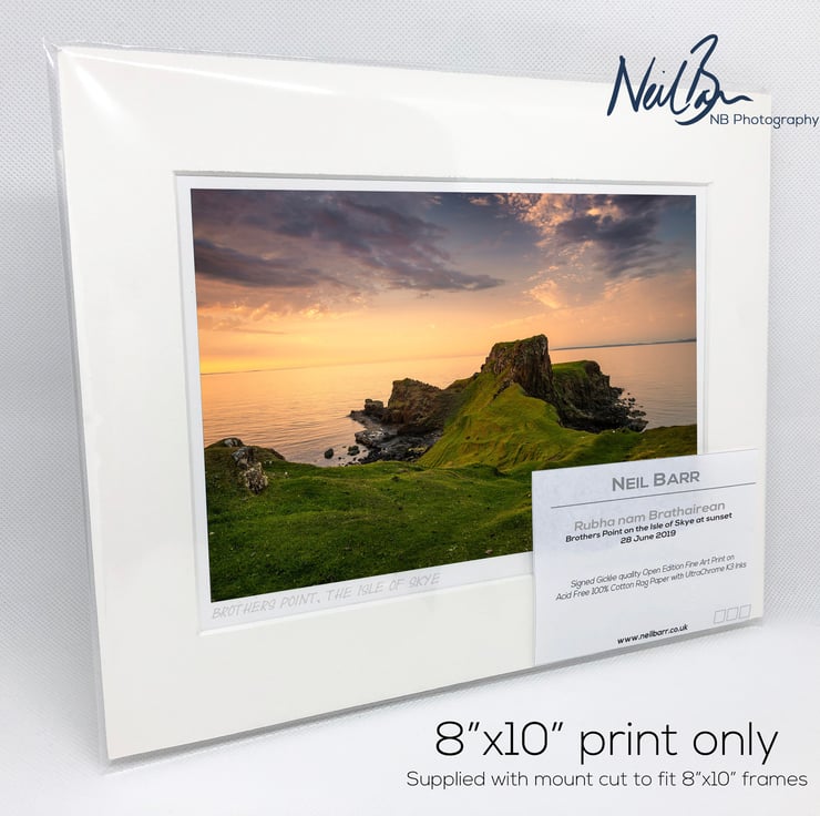 Supplied already mounted, wrapped & with signed labels & certificate, the image is printed on A5 size fine art paper (148x210mm). The actual image size is smaller (see listing images for sizes - image approx. 185x123mm) to allow for the signature & inscription. The 100% acid-free mount is cut to fit standard ready-made frames from high street stores. EXTERNAL mount size is 10"x8". This is the OUTSIDE size of the mount (and thus the size your frame should be).
