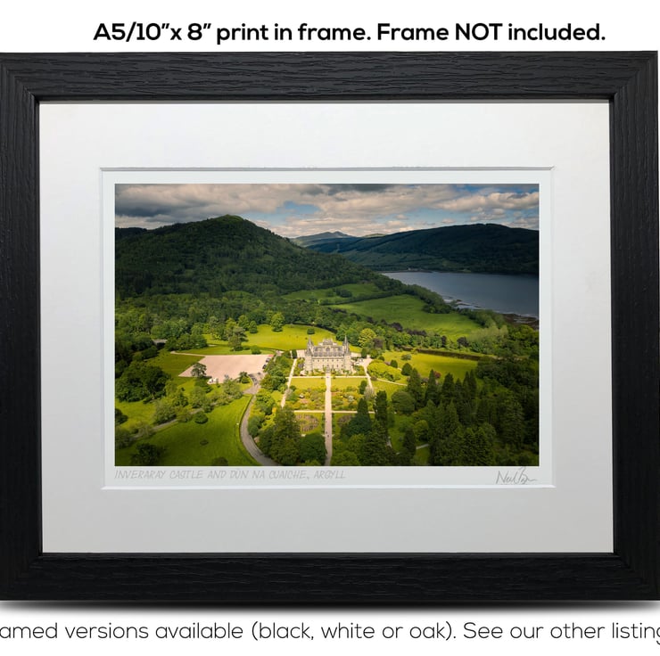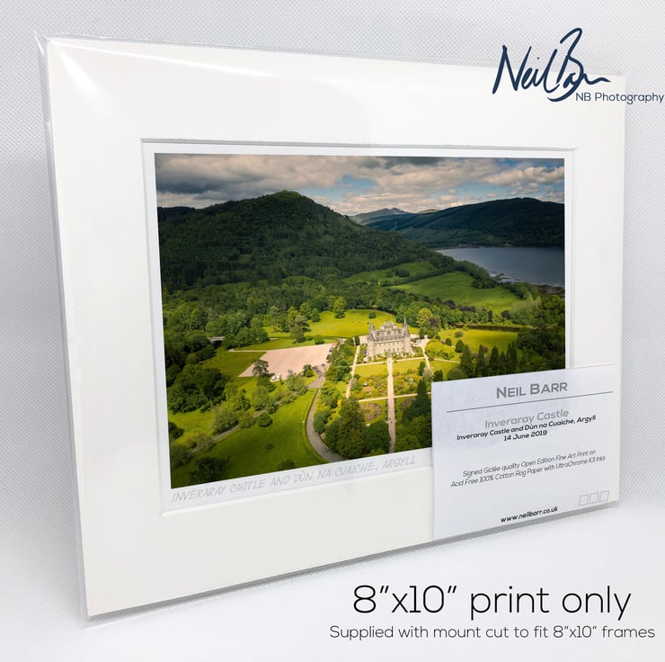 Supplied already mounted, wrapped & with signed labels & certificate, the image is printed on A5 size fine art paper (148x210mm). The actual image size is smaller (see listing images for sizes - image approx. 185x123mm) to allow for the signature & inscription. The 100% acid-free mount is cut to fit standard ready-made frames from high street stores. EXTERNAL mount size is 10"x8". This is the OUTSIDE size of the mount (and thus the size your frame should be).