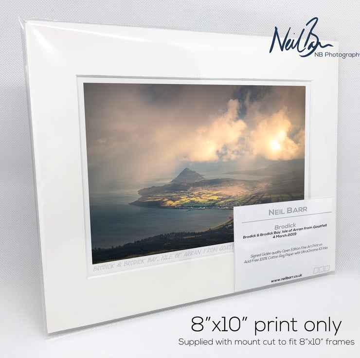 Supplied already mounted, wrapped & with signed labels & certificate, the image is printed on A5 size fine art paper (148x210mm). The actual image size is smaller (see listing images for sizes - image approx. 185x123mm) to allow for the signature & inscription. The 100% acid-free mount is cut to fit standard ready-made frames from high street stores. EXTERNAL mount size is 10"x8". This is the OUTSIDE size of the mount (and thus the size your frame should be).
