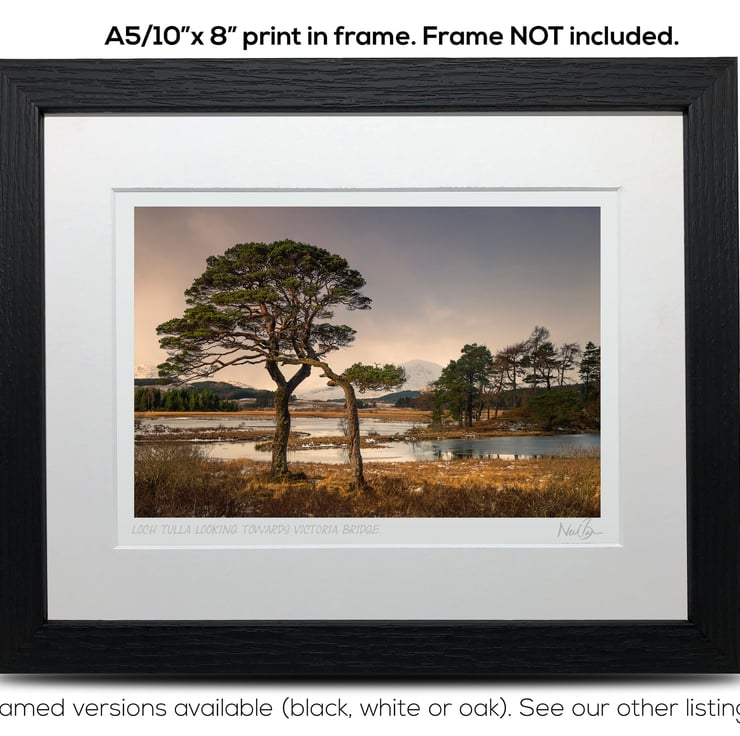 Supplied already mounted, wrapped & with signed labels & certificate, the image is printed on A5 size fine art paper (148x210mm). The actual image size is smaller (see listing images for sizes - image approx. 185x123mm) to allow for the signature & inscription. The 100% acid-free mount is cut to fit standard ready-made frames from high street stores. EXTERNAL mount size is 10"x8". This is the OUTSIDE size of the mount (and thus the size your frame should be).