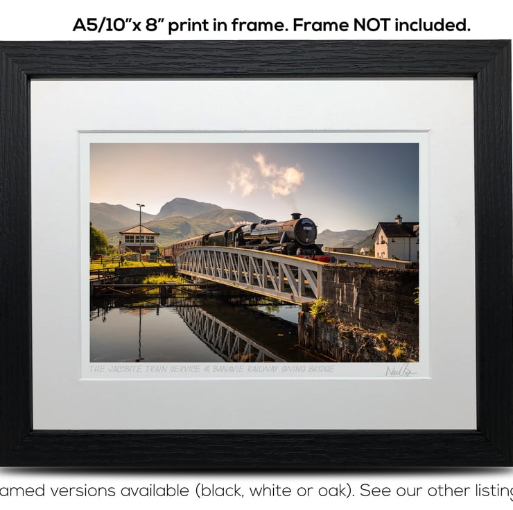 Supplied already mounted, wrapped & with signed labels & certificate, the image is printed on A5 size fine art paper (148x210mm). The actual image size is smaller (see listing images for sizes - image approx. 185x123mm) to allow for the signature & inscription. The 100% acid-free mount is cut to fit standard ready-made frames from high street stores. EXTERNAL mount size is 10"x8". This is the OUTSIDE size of the mount (and thus the size your frame should be).
