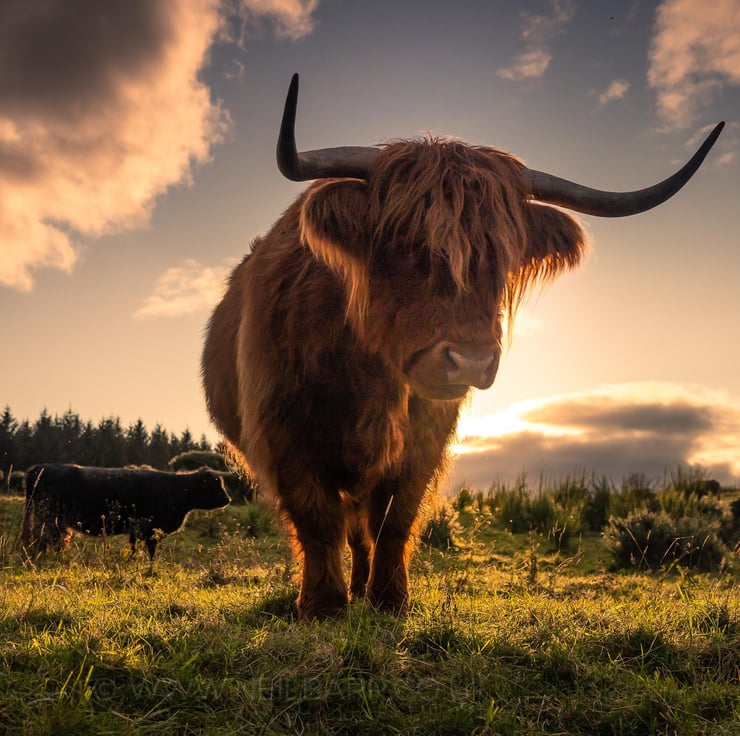 Image: "Heilan Coo" - A Highland Cow on Gleniffer Braes near sunset, 20 October 2019 - by Scotland photographer Neil Barr