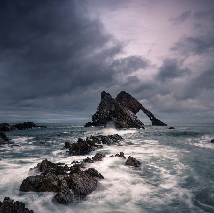 Image: "5 Minute Window" - Bow Fiddle Rock, Portknockie, on a wet and stormy day, 31 December 2016 - by Scotland photographer Neil Barr