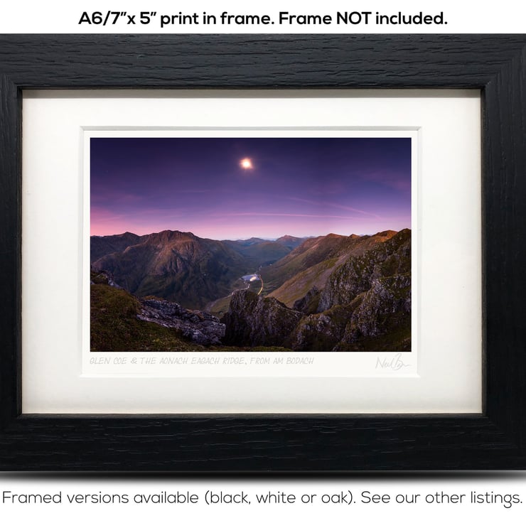Image: "Moon over Glen Coe" - Moon setting over Glen Coe and the Aonach Eagach ridge, from Am Bodach, 30 September 2015 - by Scotland photographer Neil Barr