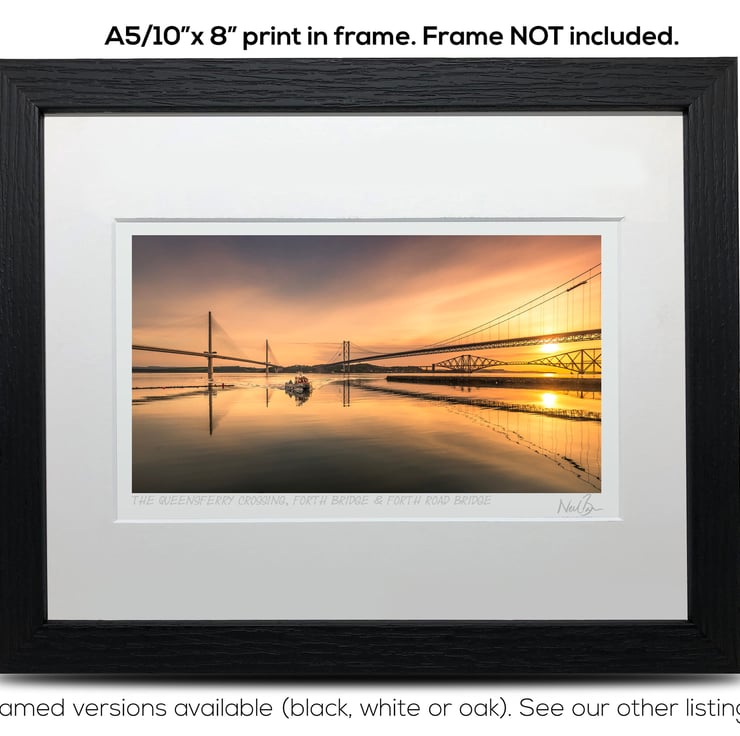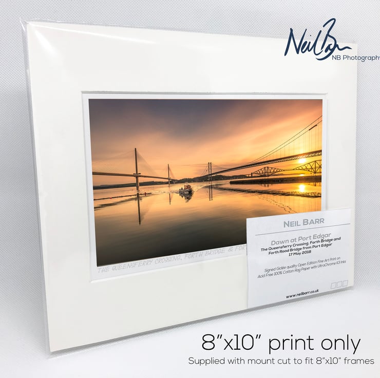 Supplied already mounted, wrapped & with signed labels & certificate, the image is printed on A5 size fine art paper (148x210mm). The actual image size is smaller (see listing images for sizes - image approx. 180x100mm) to allow for the signature & inscription. The 100% acid-free mount is cut to fit standard ready-made frames from high street stores. EXTERNAL mount size is 10"x8". This is the OUTSIDE size of the mount (and thus the size your frame should be).
