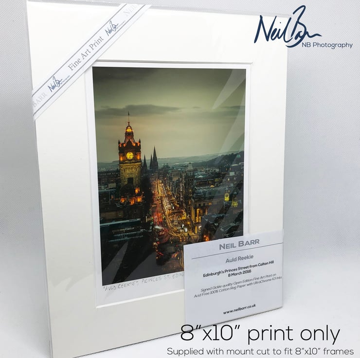 Supplied already mounted, wrapped & with signed labels & certificate, the image is printed on A5 size fine art paper (148x210mm). The actual image size is smaller (see listing images for sizes - image approx. 161x123mm) to allow for the signature & inscription. The 100% acid-free mount is cut to fit standard ready-made frames from high street stores. EXTERNAL mount size is 10"x8". This is the OUTSIDE size of the mount (and thus the size your frame should be).