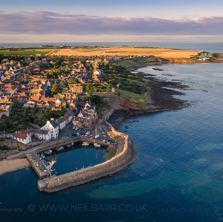 Image: "Crail" - Crail and Crail Harbour in the East Neuk of Fife looking towards Fife Ness at sunset, 17 August 2021 - by Scotland photographer Neil Barr