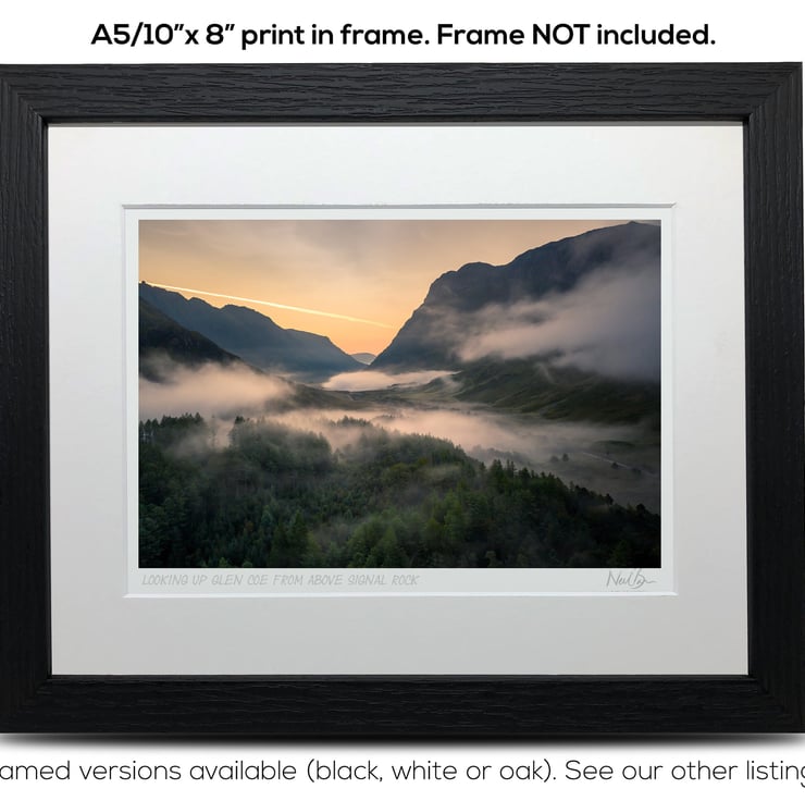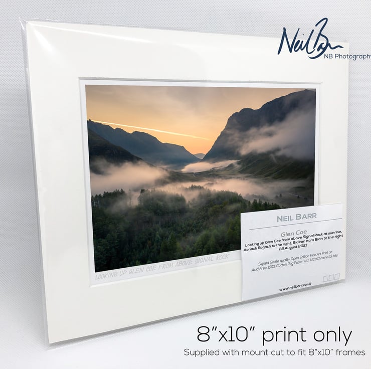 Supplied already mounted, wrapped & with signed labels & certificate, the image is printed on A5 size fine art paper (148x210mm). The actual image size is smaller (see listing images for sizes - image approx. 185x123mm) to allow for the signature & inscription. The 100% acid-free mount is cut to fit standard ready-made frames from high street stores. EXTERNAL mount size is 10"x8". This is the OUTSIDE size of the mount (and thus the size your frame should be).