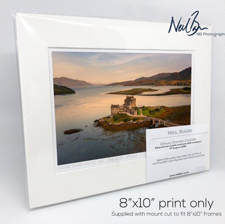 Supplied already mounted, wrapped & with signed labels & certificate, the image is printed on A5 size fine art paper (148x210mm). The actual image size is smaller (see listing images for sizes - image approx. 185x123mm) to allow for the signature & inscription. The 100% acid-free mount is cut to fit standard ready-made frames from high street stores. EXTERNAL mount size is 10"x8". This is the OUTSIDE size of the mount (and thus the size your frame should be).