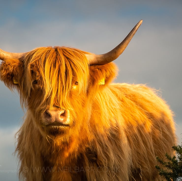 Image: "Heilan Coo" - A Highland Cow on Gleniffer Braes near sunset, 20 October 2019 - by Scotland photographer Neil Barr