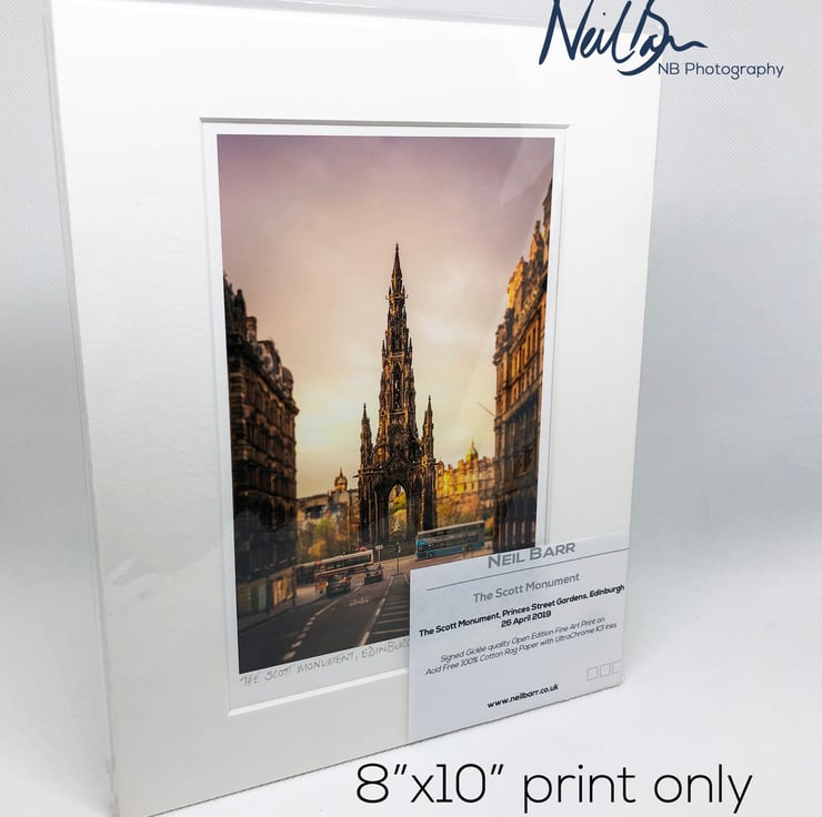 Supplied already mounted, wrapped & with signed labels & certificate, the image is printed on A5 size fine art paper (148x210mm). The actual image size is smaller (see listing images for sizes - image approx. 176x117mm) to allow for the signature & inscription. The 100% acid-free mount is cut to fit standard ready-made frames from high street stores. EXTERNAL mount size is 10"x8". This is the OUTSIDE size of the mount (and thus the size your frame should be).