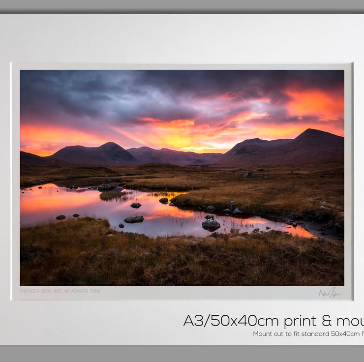 Image: "Fire on Rannoch Moor" - Rannoch Moor and Am Monadh Dubh at sunset, 19 October 2016 - by Scotland photographer Neil Barr