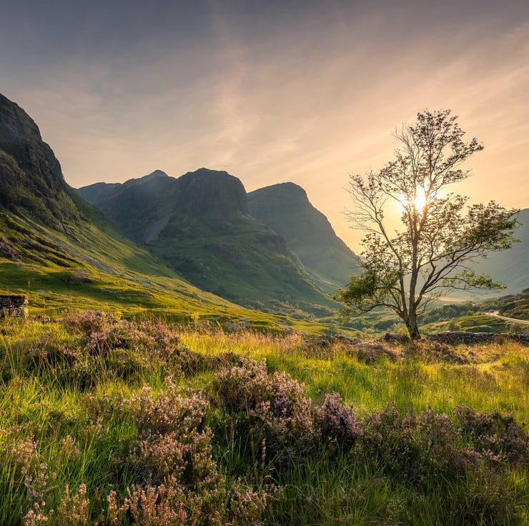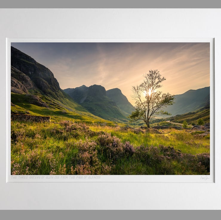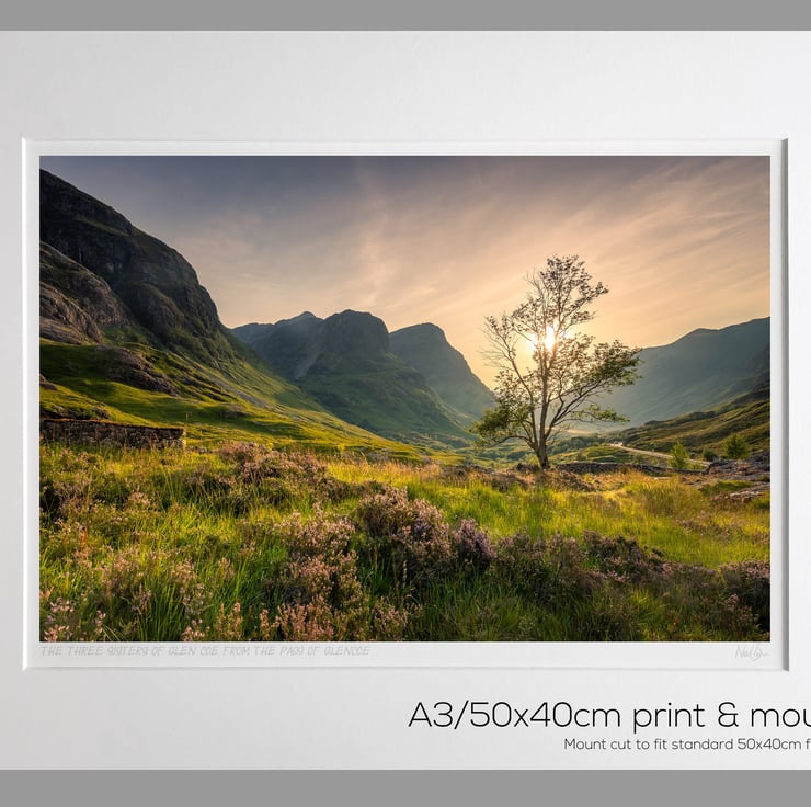 Image: "The Three Sisters" - The Three Sisters of Glen Coe at sunset from the Pass of Glencoe, 24 August 2021 - by Scotland photographer Neil Barr