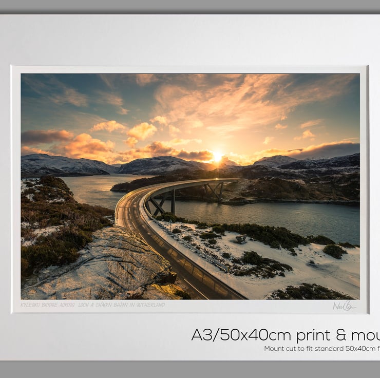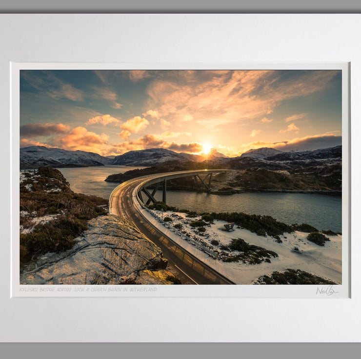 Image: "Kylesku" - Kylesku Bridge across Loch a' Chairn Bhain in Sutherland at sunrise, 12 February 2018 - by Scotland photographer Neil Barr