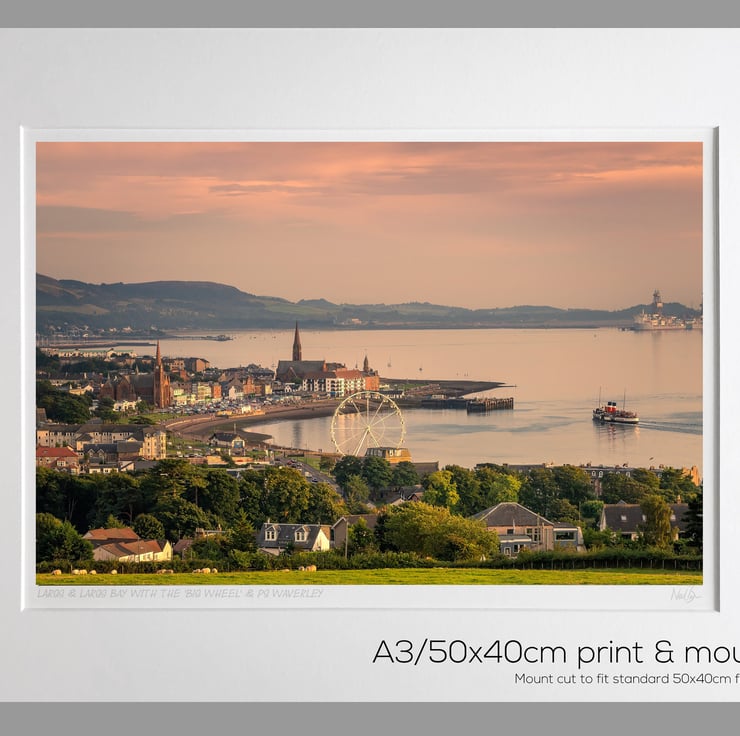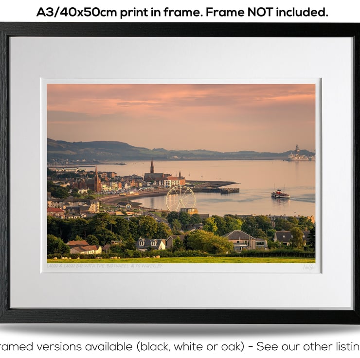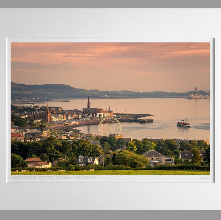 Image: "Largs" - Largs and Largs Bay with the 'Big Wheel', North Ayrshire at dusk and the PS Waverley paddle steamer heading towards the pier, 8 September 2021 - by Scotland photographer Neil Barr