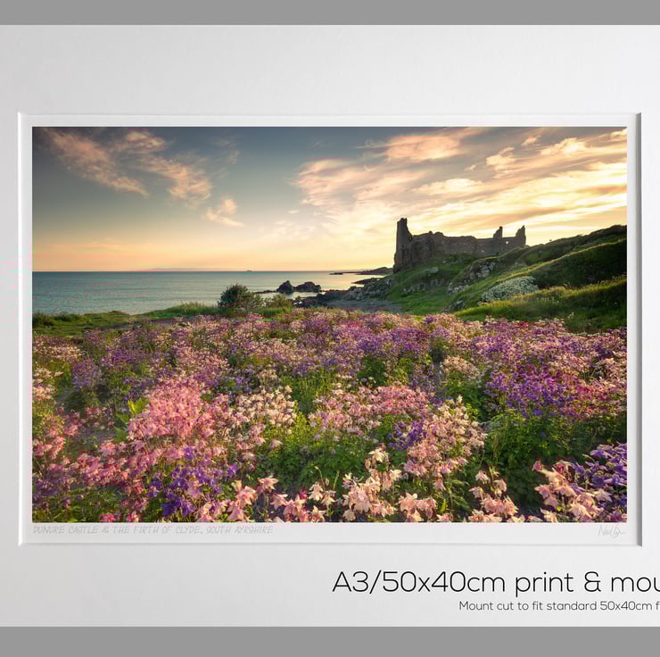 Image: "Dunure Castle" - Dunure Castle and the Firth of Clyde just after dawn, 31 May 2021 - by Scotland photographer Neil Barr
