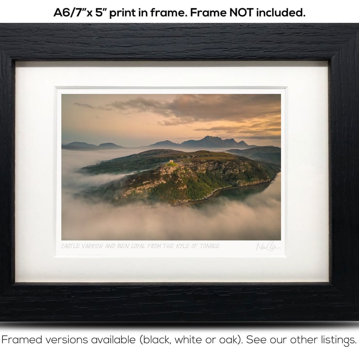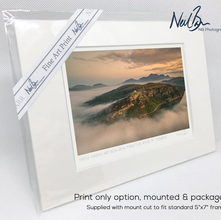 Supplied already mounted, wrapped & with signed labels & certificate, the image is printed on A6 size fine art paper (148x105mm). The actual image size is smaller (see listing images for sizes - image approx. 115x77mm) to allow for the signature & inscription. The 100% acid-free mount is cut to fit standard ready-made frames from high street stores. EXTERNAL mount size is 7"x5". This is the OUTSIDE size of the mount (and thus the size your frame should be).