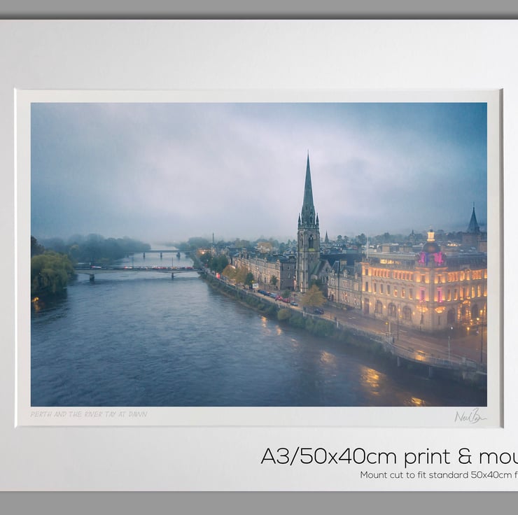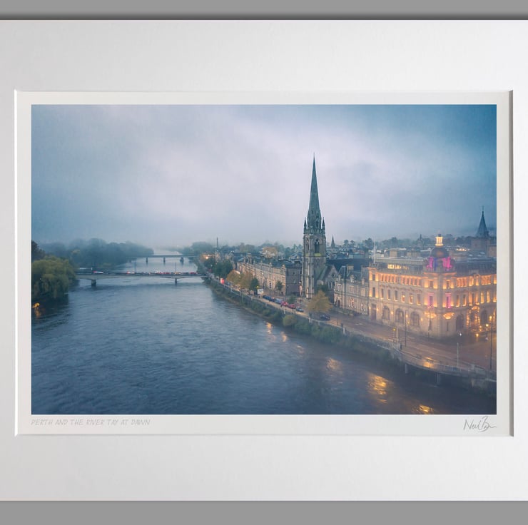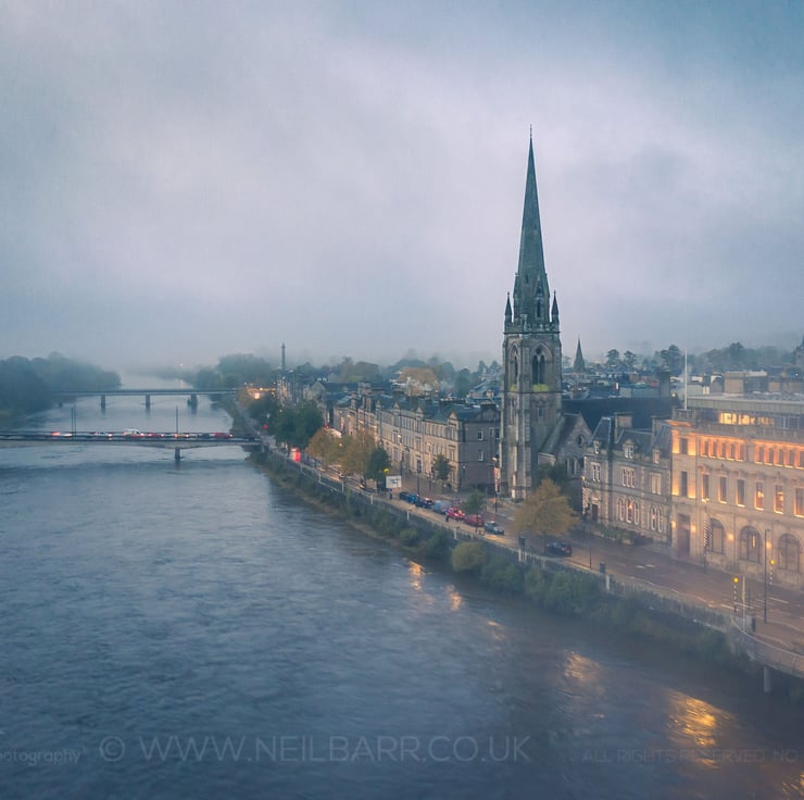 Image: "Perth" - Perth and the River Tay at dawn as mist and fog rolls in, 14 October 2019 - by Scotland photographer Neil Barr